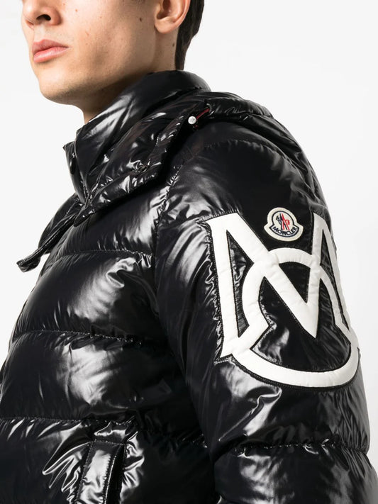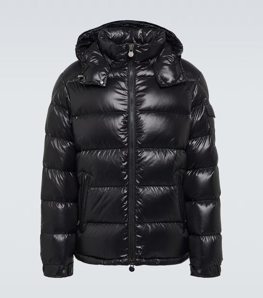 MONCLER Piumino in nylon trapuntato con cappuccio e logo applicato Maya